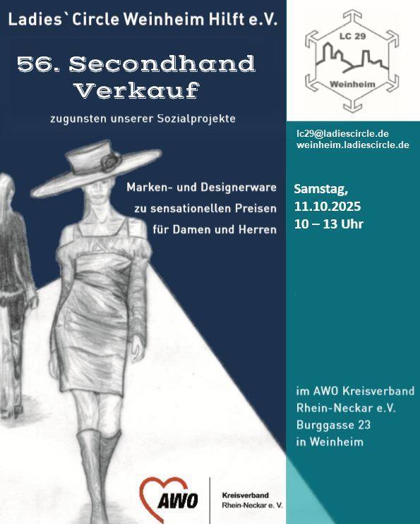 Am 10. Oktober veranstaltet der Ladies Circle Weinheim wieder seinen beliebten Second-Hand-Kleiderverkauf bei der AWO Weinheim - für alle, die Mode lieben und dabei Gutes tun möchten!